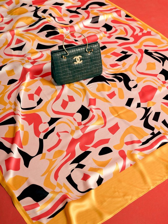 The Digital Printed Satin Saree is a modern and stylish ensemble designed for those who love contemporary fashion. Made from smooth satin fabric, this saree offers a luxurious feel with a soft, glossy finish that drapes beautifully. The lightweight and flowy nature of satin makes it an ideal choice for parties and special occasions. Featuring a vibrant digital print, this saree showcases abstract and patchwork designs, adding a trendy and artistic touch. The intricate patterns and bold colors make it a statement piece, perfect for fashion-forward individuals. The combination of abstract prints and patchwork detailing creates a unique visual appeal, ensuring you stand out at any gathering. Designed specifically for party wear, this saree exudes elegance and charm. Whether it's an evening event, cocktail party, or festive celebration, the rich satin texture and stylish print make it a stunning choice. Pair it with statement jewelry and heels to elevate your look effortlessly. For ease of maintenance, this saree is machine washable, making it convenient for regular use. The high-quality fabric retains its shine and vibrancy even after multiple washes. If you’re looking for a saree that blends contemporary style with comfort, this digital printed satin saree is a perfect addition to your wardrobe.