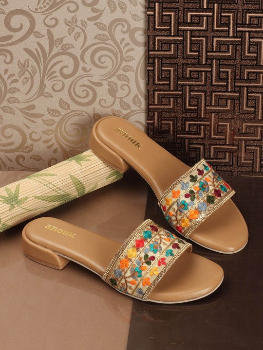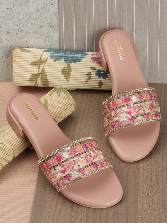 Crafted with a high-quality synthetic upper, these heels boast intricate embellishments that add a touch of glamour to your look. The open-toe design enhances breathability while elevating your overall aesthetic, making them ideal for both casual and special occasions. The cushioned footbed provides all-day comfort, ensuring a soft and supportive feel with every step. Additionally, the textured and patterned outsole offers excellent grip and stability, making these heels as functional as they are fashionable. Built on a sturdy block heel, these embellished heels provide a confident lift without compromising on comfort. The durable PVC sole ensures longevity, making them a reliable choice for various events. Pair them with your favorite outfit to create a chic and refined statement.