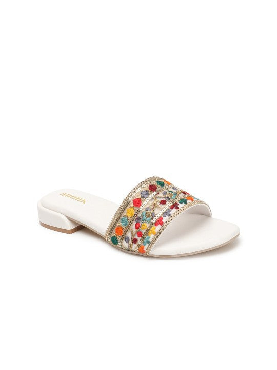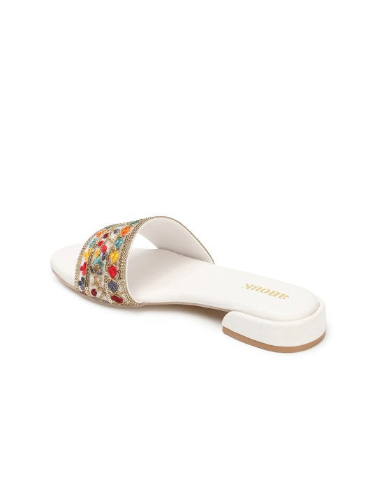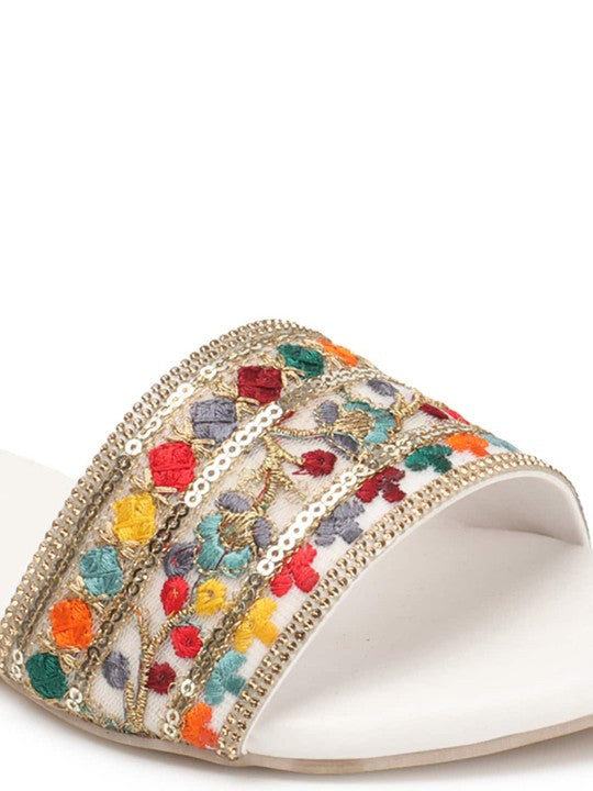 This pair of white embellished block heels is a perfect blend of elegance and style. Designed with a regular ankle and an open-back structure, these heels offer a sophisticated yet comfortable fit, making them a must-have for any fashion-forward wardrobe.