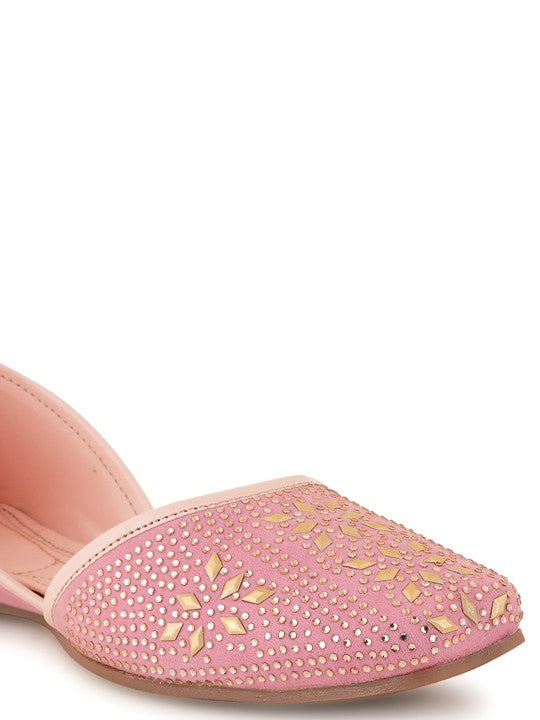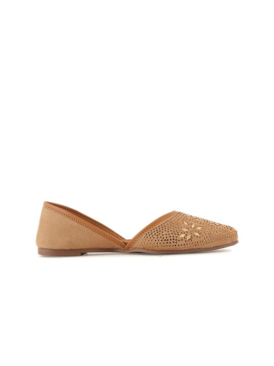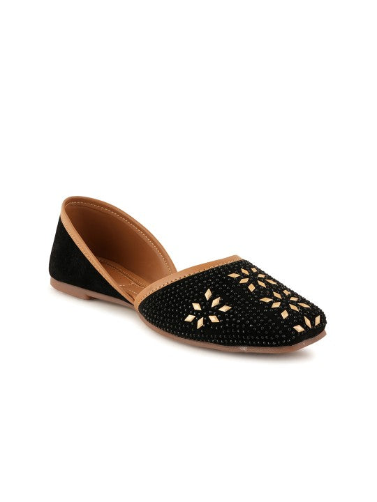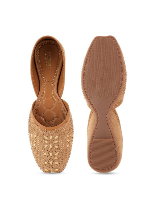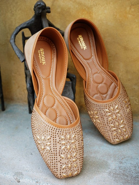 These mojaris feature a square toe design and a slip-on style, offering both elegance and convenience. Adorned with ethnic-inspired embellishments, they showcase a beautifully detailed pattern, making them perfect for ethnic occasions. With a regular ankle height and a synthetic sole material, these mojaris provide comfort and durability, making them an ideal choice for traditional and festive events.