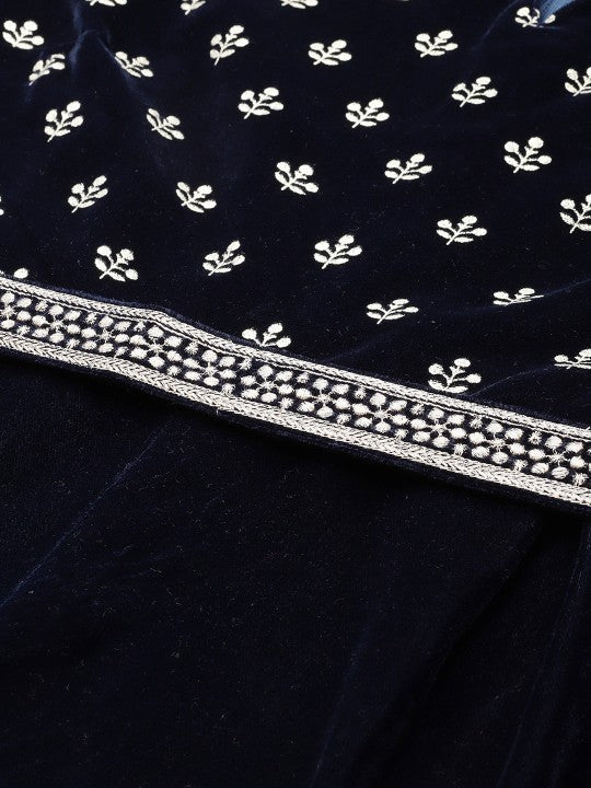 The Halter Neck Printed Embroidered Culotte Jumpsuit is an elegant blend of style and comfort. Designed in a stunning navy blue and silver-toned print, this jumpsuit features intricate embroidery that adds a touch of sophistication. The halter neck design and sleeveless cut offer a chic, modern look, perfect for any occasion. With two convenient pockets, a concealed zip for a seamless fit, and a matching belt to accentuate the waist, it combines practicality with flair. Crafted from durable polyester fabric, it is easy to maintain with machine wash care. This ethnic-inspired jumpsuit is a versatile addition to your wardrobe, ideal for festive gatherings or casual outings.