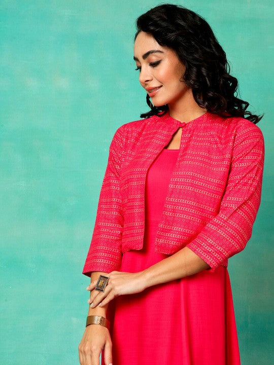 The Mandarin Collar Maxi Dress is a perfect blend of elegance and simplicity, making it a versatile addition to any wardrobe. Designed in a charming pink solid color, this dress offers a timeless and graceful appeal suitable for various occasions. Featuring a Mandarin collar, the dress adds a touch of sophistication while maintaining a modern yet minimalistic look. The three-quarter regular sleeves provide a balanced and comfortable fit, making it ideal for both casual and semi-formal wear. With its maxi length and flared hem, the dress creates a flowy and flattering silhouette, enhancing ease of movement. Crafted from viscose rayon, the fabric is lightweight, breathable, and soft against the skin, ensuring all-day comfort. Part of the New Basics collection, this woven dress is opaque and designed for effortless styling. It is machine washable, making it easy to maintain while retaining its charm. Whether for casual outings or elegant gatherings, this maxi dress is a stylish and practical choice.