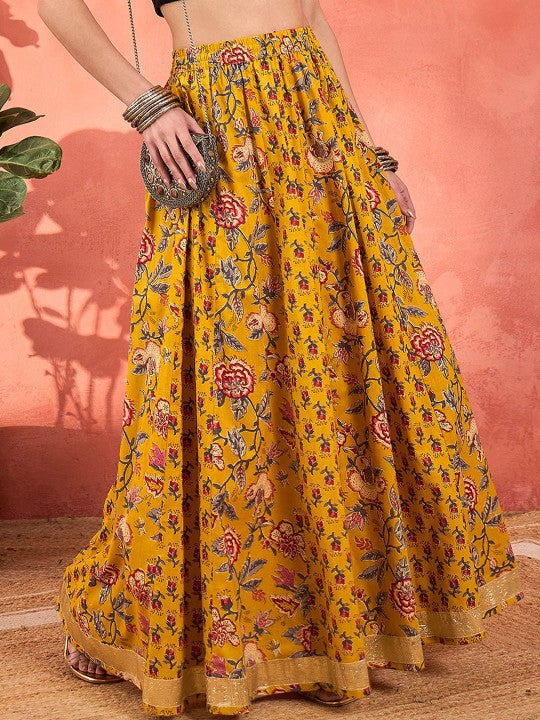 This garment is a flared, maxi-length piece with a flared hemline. It is made from woven fabric, features a slip-on closure, and is opaque in transparency.