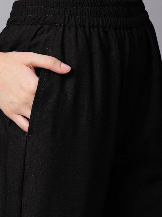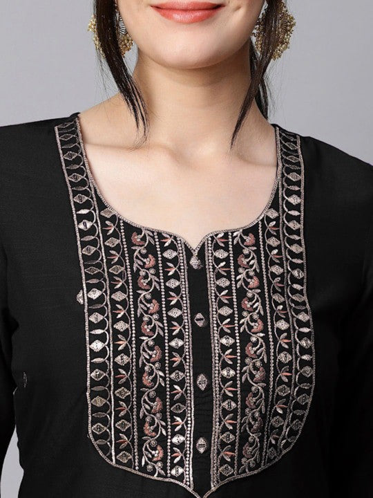 This beautiful women's ethnic ensemble includes an embroidered kurta, trousers, and a dupatta, blending traditional style with modern comfort. The kurta, crafted from a soft cotton blend, features intricate ethnic motifs that add a festive and cultural charm, making it ideal for special occasions. Designed in a regular fit, it ensures both ease of movement and flattering style, while the lightweight poly chiffon dupatta drapes gracefully, completing the traditional look with elegance. The delicate embroidery throughout enhances its rich appeal, making it a perfect choice for festive gatherings. For best care, a gentle hand wash is recommended to maintain the fabric's quality and embroidery detailing.