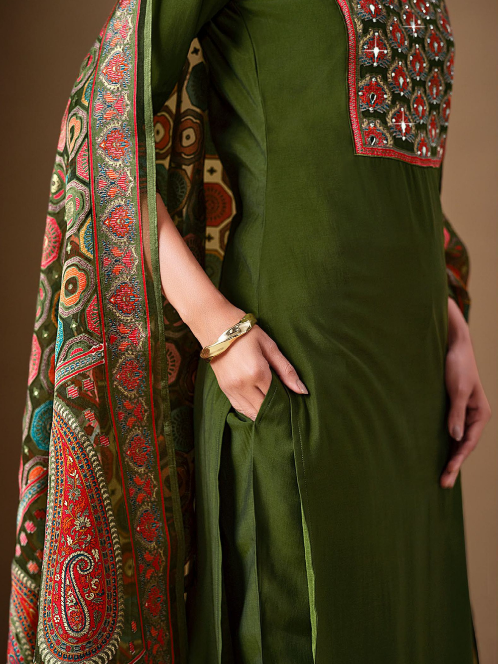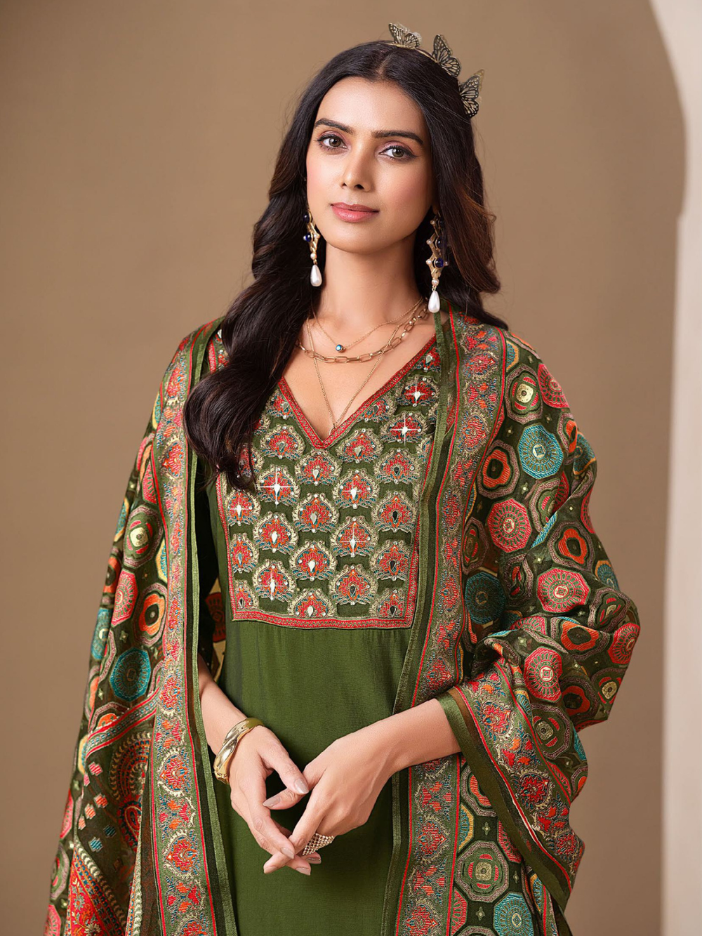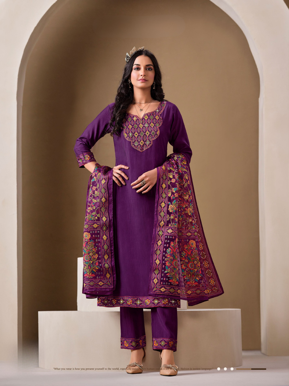 Discover timeless sophistication with the Brasso Collection by Lily & Lali — a celebration of color, craftsmanship, and culture. Each ensemble is crafted from rich brasso fabric, adorned with intricate embroidery and detailed borders that exude ethnic charm. The collection showcases a stunning palette of royal purples, mustard yellows, teals, olives, and pinks — each paired with beautifully patterned dupattas that complete the look with effortless grace. Perfect for festive occasions, gatherings, or elegant evenings, these outfits blend traditional artistry with contemporary style, bringing you comfort, elegance, and poise in every wear.